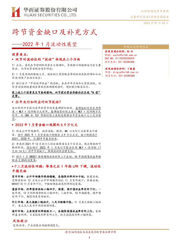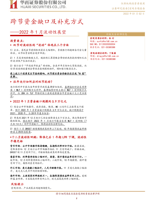 【华西证券】【20220102】2022年1月流动性展望:跨节资金缺口及补充方式-24页