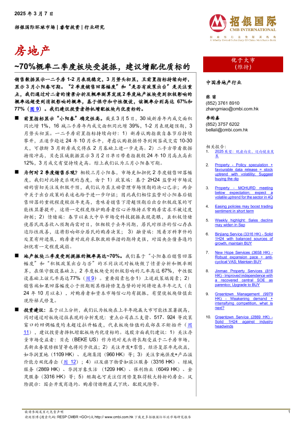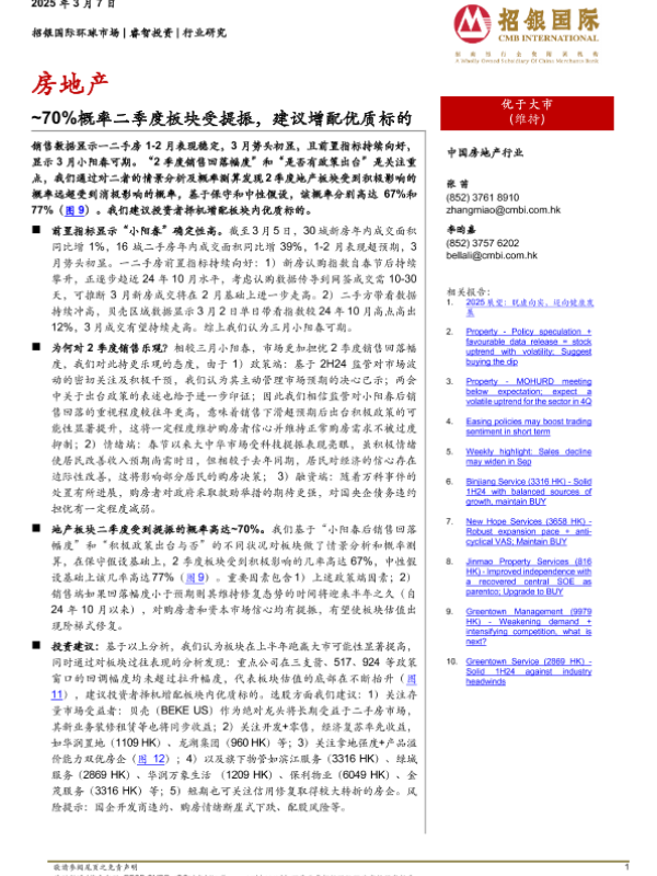 【招银国际环球市场】【20250307】房地产:~70%概率二季度板块受提振,建议增配优质标的-12页