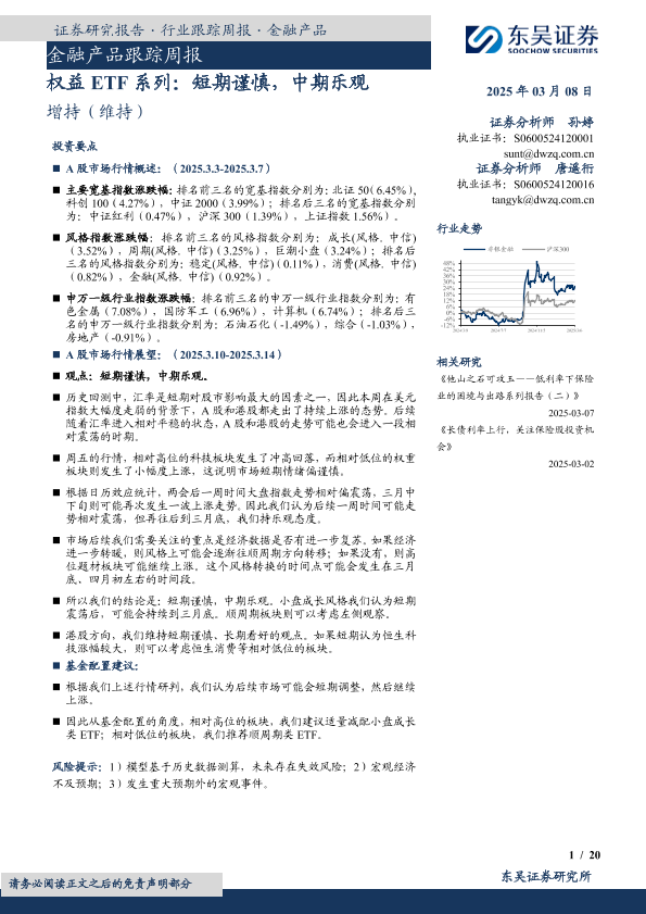【东吴证券】【20250308】20250308-东吴证券-金融产品跟踪周报:权益ETF系列:短期谨慎,中期乐观-20页