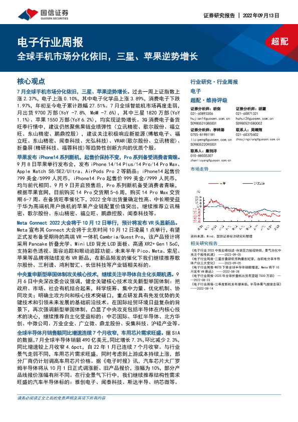 【国信证券】【20220913】电子行业周报:全球手机市场分化依旧,三星、苹果逆势增长-13页