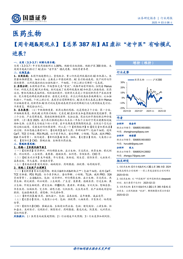 【国盛证券】【20250308】20250308-国盛证券-医药生物【周专题&周观点】【总第387期】AI虚拟“老中医”有啥模式进展?-31页
