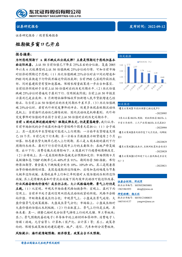 【东北证券】【20220912】短期做多窗口已开启-27页