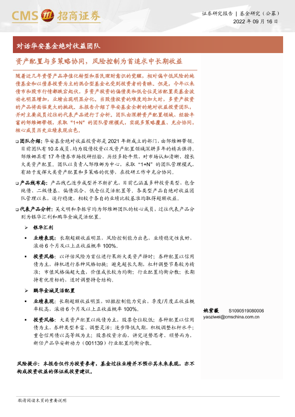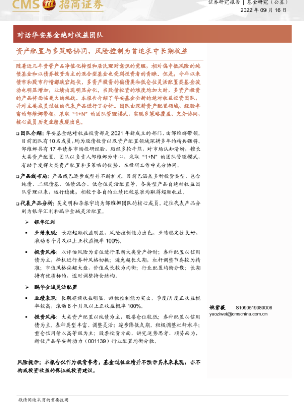 【海通证券】【20220916】对话华安基金绝对收益团队:资产配置与多策略协同,风险控制为首追求中长期收益-27页