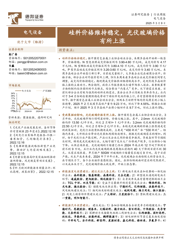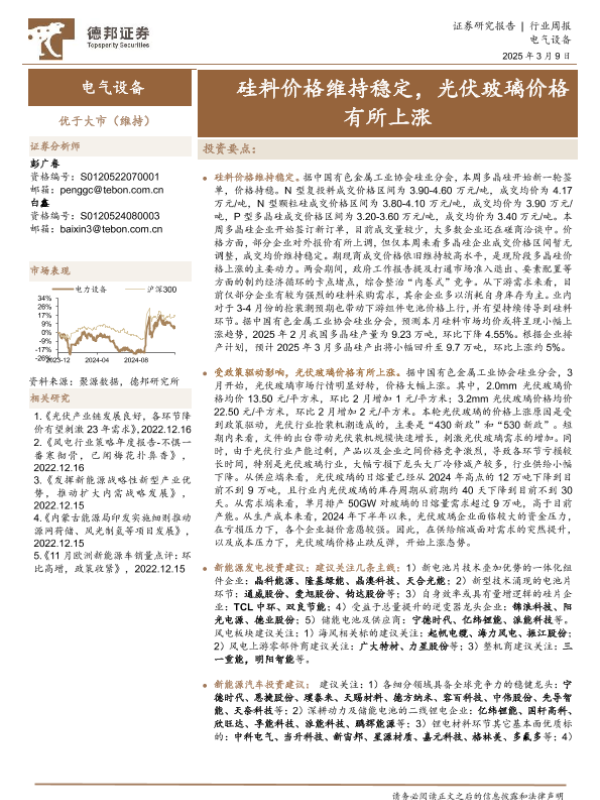 【德邦证券】【20250309】20250309-德邦证券-电气设备行业周报:硅料价格维持稳定,光伏玻璃价格有所上涨-14页