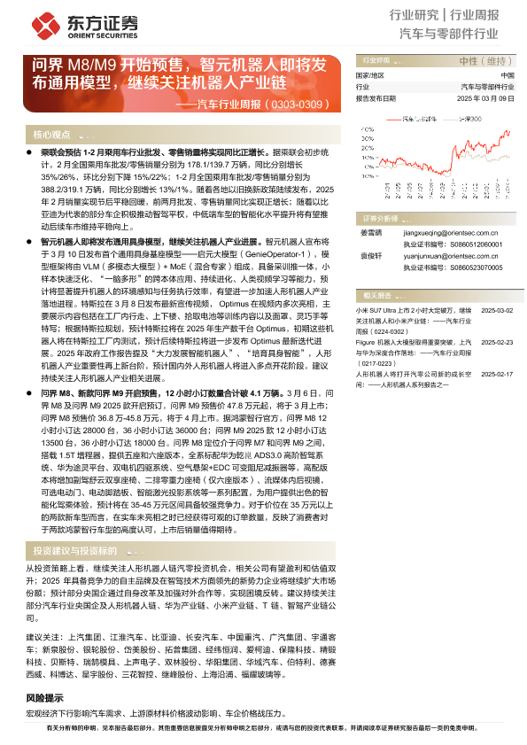 【东方证券】【20250309】20250309-东方证券-汽车行业周报:问界M8 M9开始预售,智元机器人即将发布通用模型,继续关注机器人产业链-19页