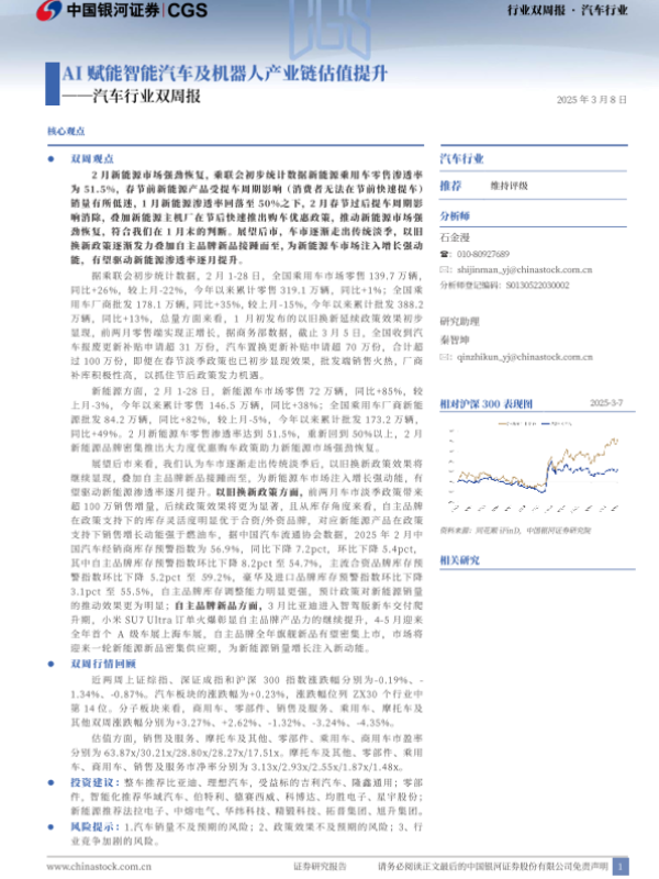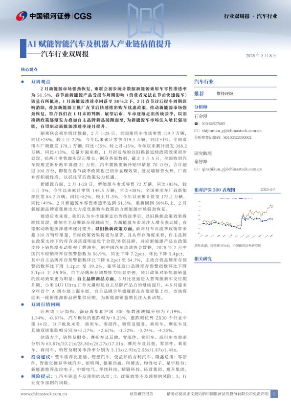 【银河证券】【20250308】20250308-中国银河-汽车行业双周报:AI赋能智能汽车及机器人产业链估值提升-27页