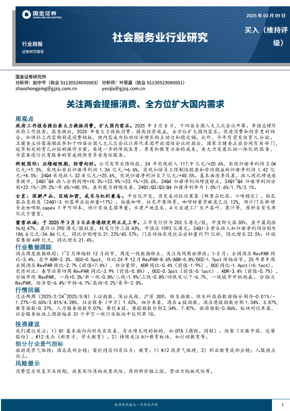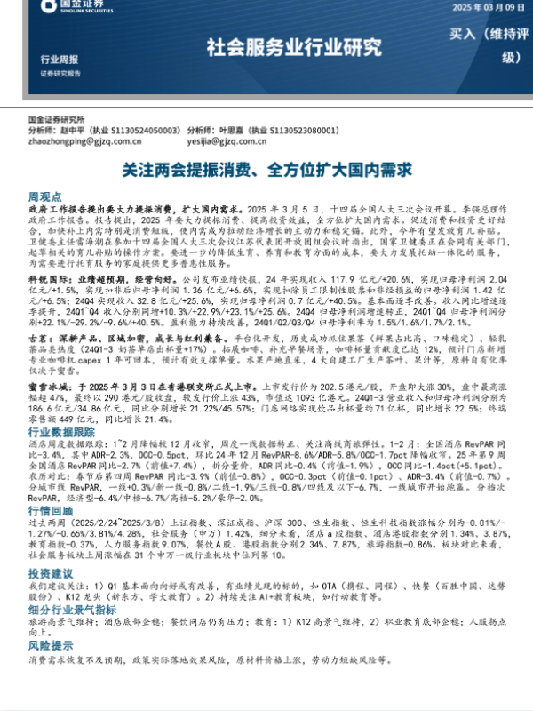 【国金证券】【20250309】社会服务业行业研究:关注两会提振消费、全方位扩大国内需求-11页