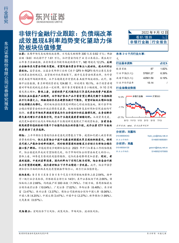 【东兴证券】【20220912】非银行金融行业跟踪:负债端改革成效显现&利率趋势变化望助力保险板块估值修复-11页