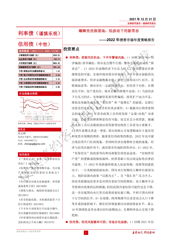 【国融证券】【20211231】2022年债券市场年度策略报告:螺蛳壳里做道场,低波动下的新常态-32页