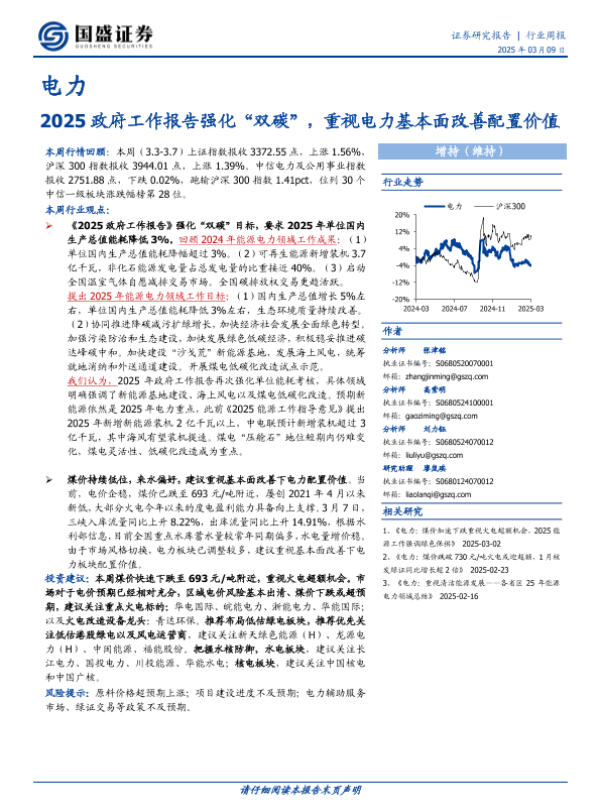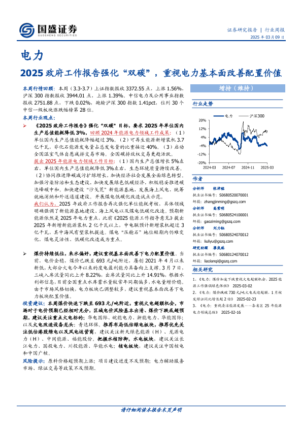 【国盛证券】【20250309】2025政府工作报告强化“双碳”,重视电力基本面改善配置价值-15页