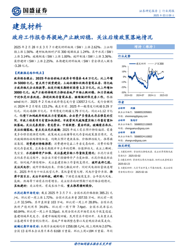 【国盛证券】【20250309】20250309-国盛证券-建筑材料行业周报:政府工作报告再提地产止跌回稳,关注后续政策落地情况-16页