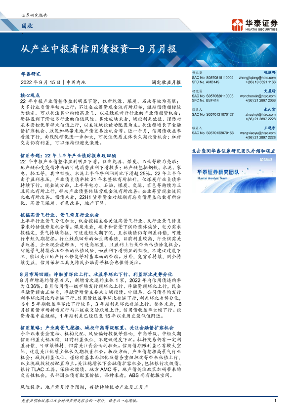 【华泰证券】【20220915】固定收益月报:从产业中报看信用债投资_9月月报-32页