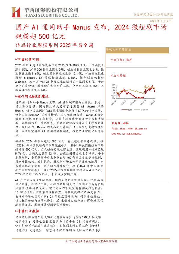 【华西证券】【20250309】2025年第9周:国产AI通用助手Manus发布,2024微短剧市场规模超500亿元-39页