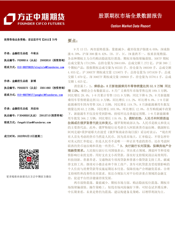 【方正中期期货】【20220913】股票期权市场全景数据报告-22页