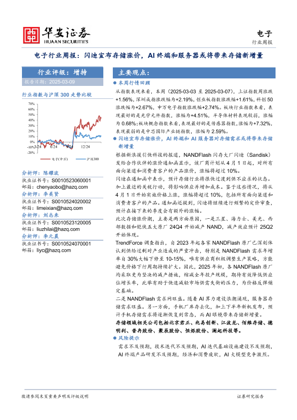 【华安证券】【20250309】20250309-华安证券-电子行业周报:闪迪宣布存储涨价,AI终端和服务器或将带来存储新增量-15页
