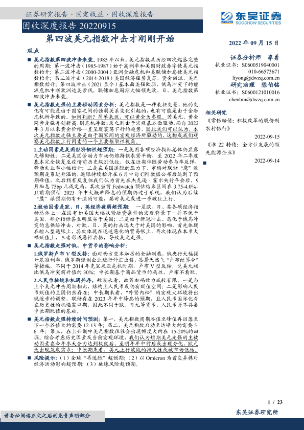 【东吴证券】【20220915】固收深度报告:第四波美元指数冲击才刚刚开始-23页