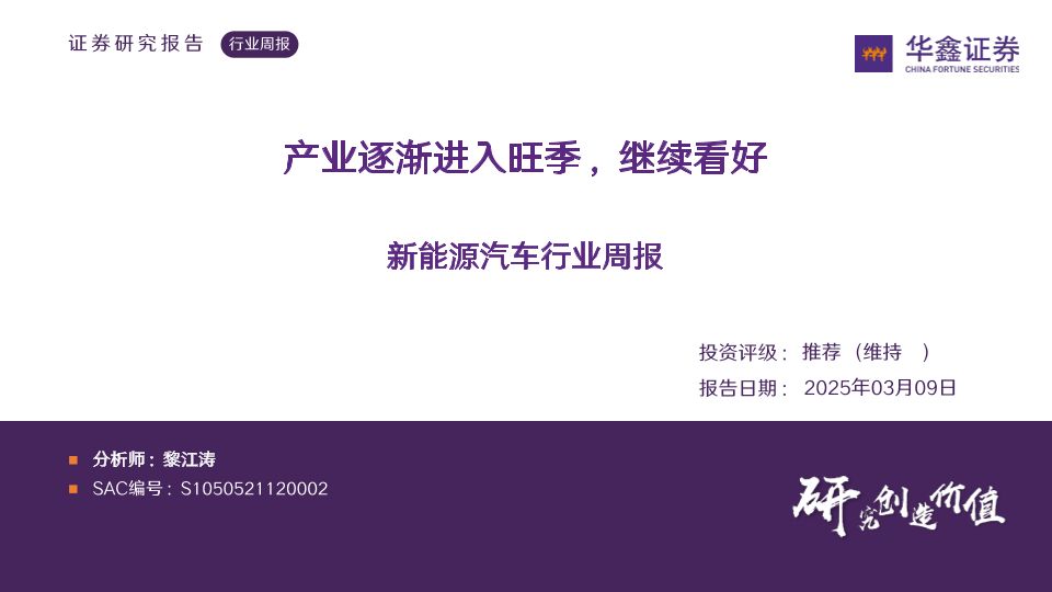 【华鑫证券】【20250309】20250309-华鑫证券-新能源汽车行业周报:产业逐渐进入旺季,继续看好-33页