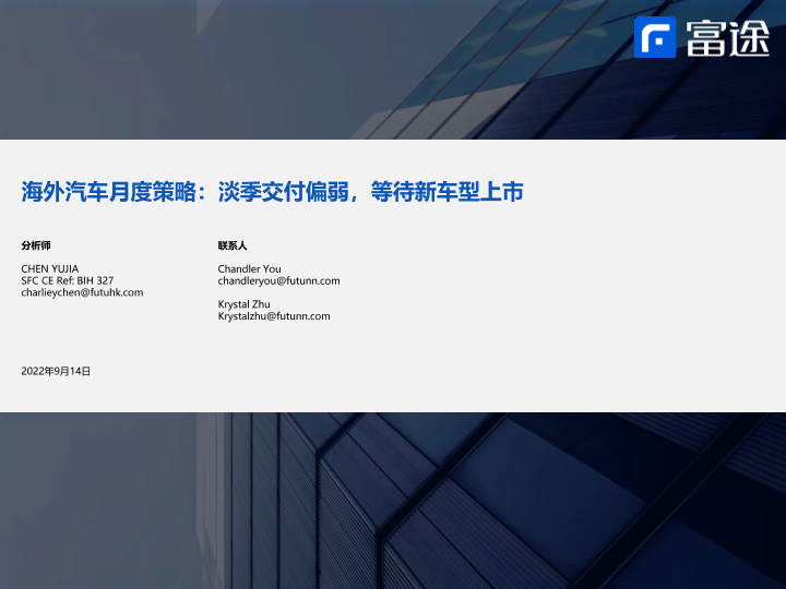 【富途证券】【20220914】海外汽车行业月度策略:淡季交付偏弱,等待新车型上市-22页