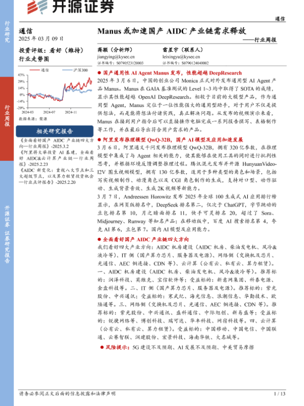 【开源证券】【20250309】Manus或加速国产AIDC产业链需求释放-13页