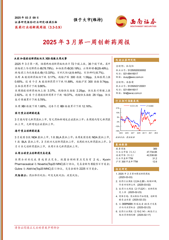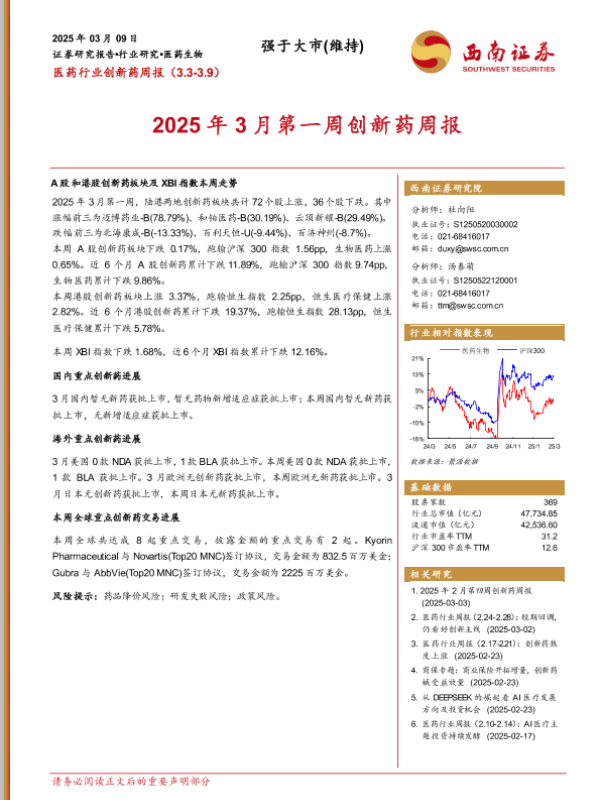 【西南证券】【20250309】2025年3月第一周创新药周报-16页