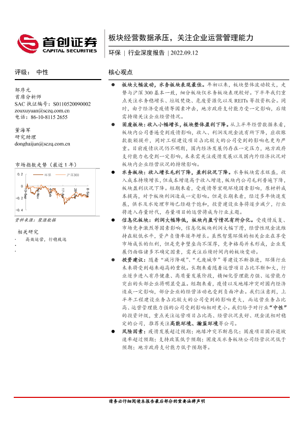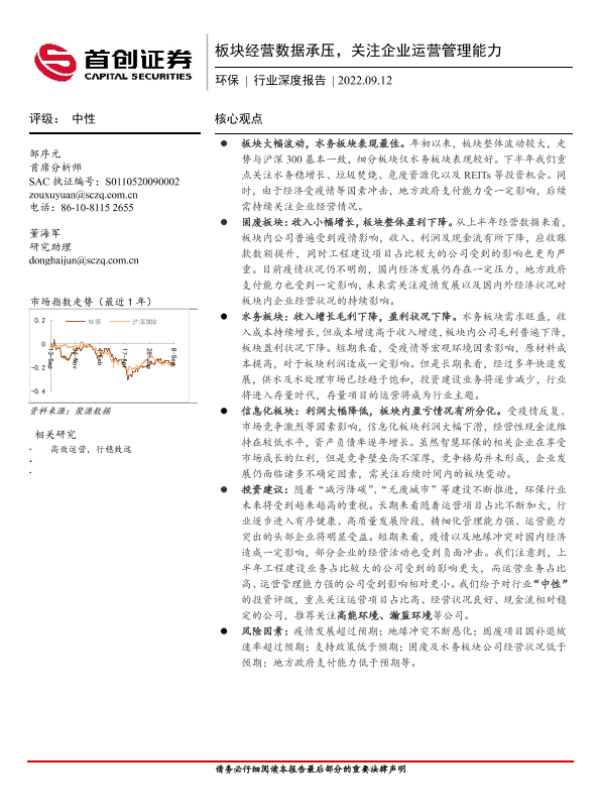 【首创证券】【20220912】环保行业深度报告:板块经营数据承压,关注企业运营管理能力-19页