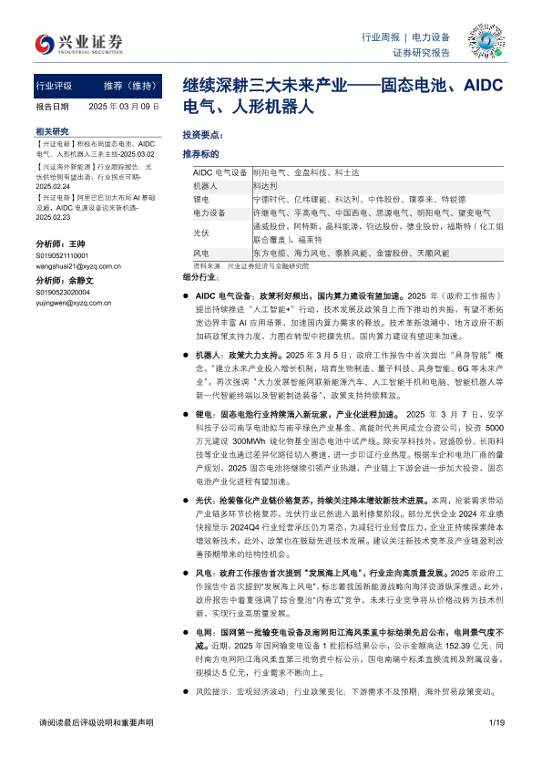【兴业证券】【20250309】电力设备行业周报:继续深耕三大未来产业——固态电池、AIDC电气、人形机器人-19页