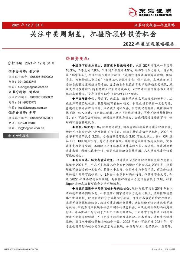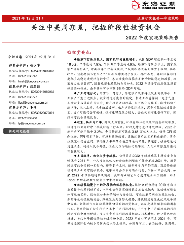 【东海证券】【20211231】2022年度宏观策略报告:关注中美周期差,把握阶段性投资机会-48页