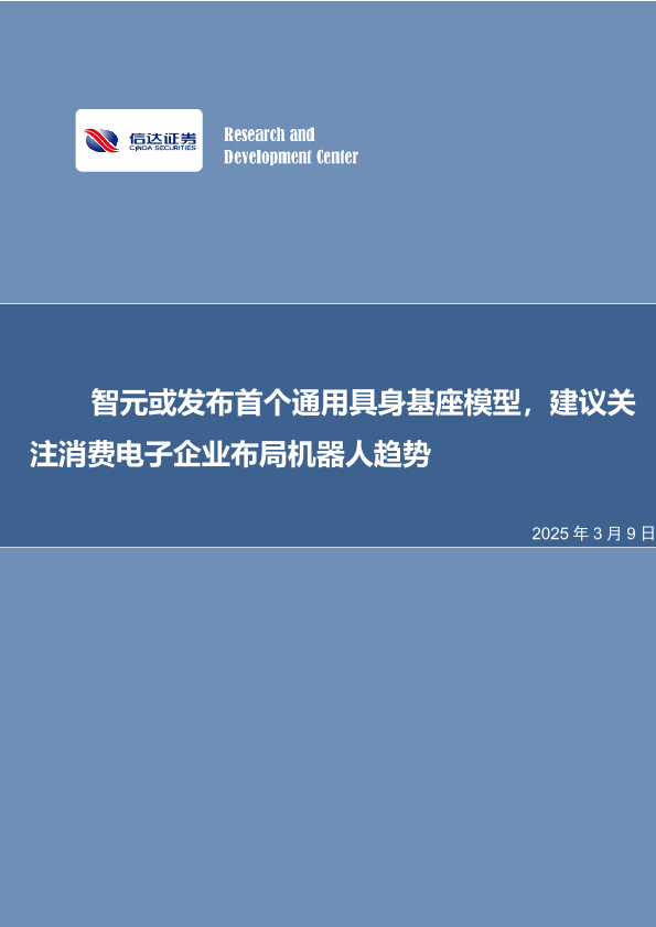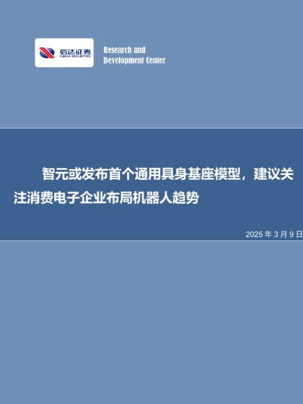 【信达证券】【20250309】20250309-信达证券-电子行业周报:智元或发布首个通用具身基座模型,建议关注消费电子企业布局机器人趋势-11页