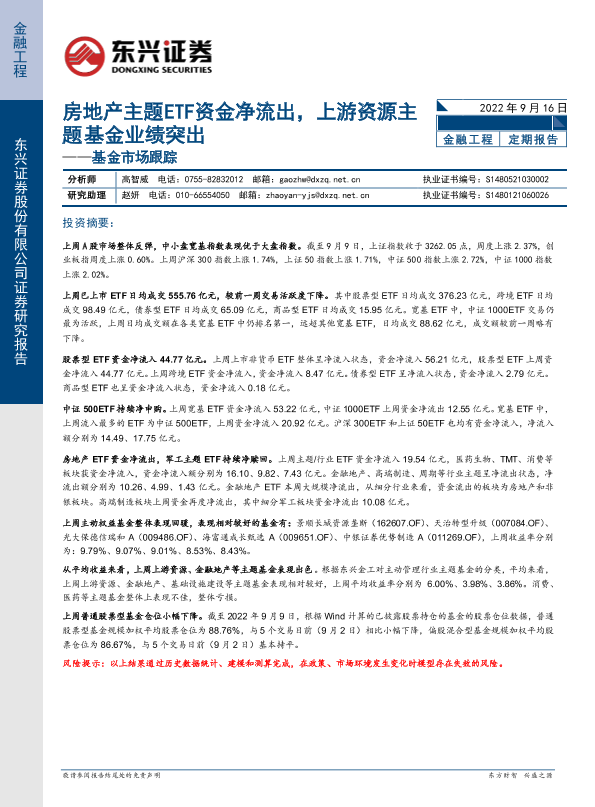 【东兴证券】【20220916】基金市场跟踪:房地产主题ETF资金净流出,上游资源主题基金业绩突出-18页