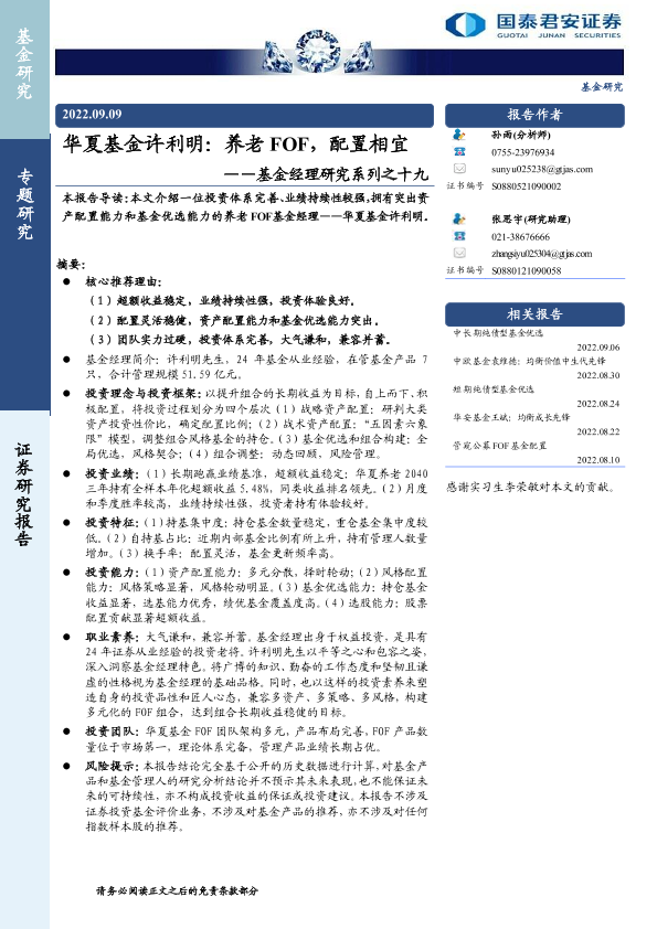 【国泰君安证券】【20220909】华夏基金许利明:养老 FOF,配置相宜-22页
