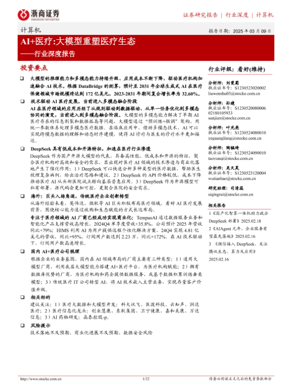 【浙商证券】【20250309】AI+医疗:大模型重塑医疗生态-22页