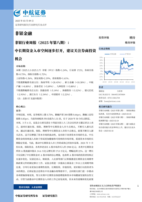 【中航证券】【20250309】非银行业周报(2025年第八期):中长期资金入市空间逐步打开,建议关注券商投资机会-10页