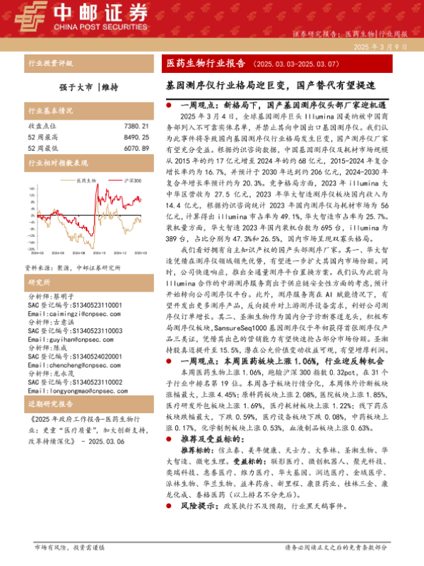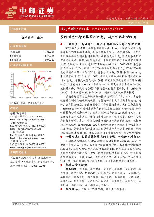 【中邮证券】【20250309】20250309-中邮证券-医药生物行业报告:基因测序仪行业格局迎巨变,国产替代有望提速-14页