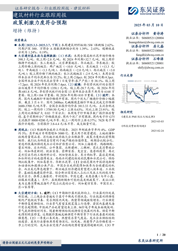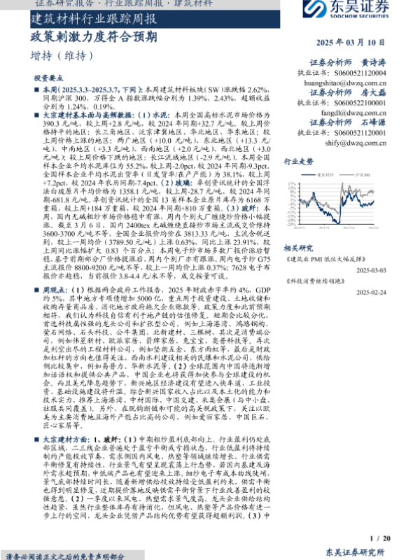 【东吴证券】【20250310】建筑材料行业跟踪周报:政策刺激力度符合预期-20页