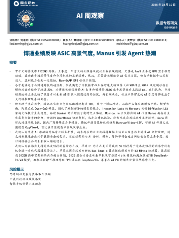 【国金证券】【20250310】AI周观察:博通业绩反映ASIC高景气度,Manus引发Agent热潮-10页