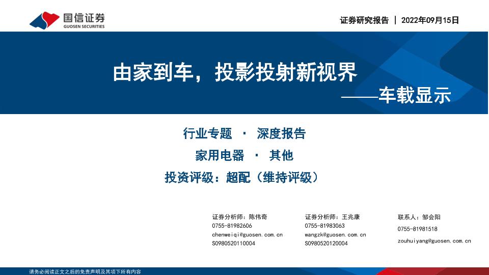 【国信证券】【20220915】由家到车,投影投射新视界——车载显示-36页