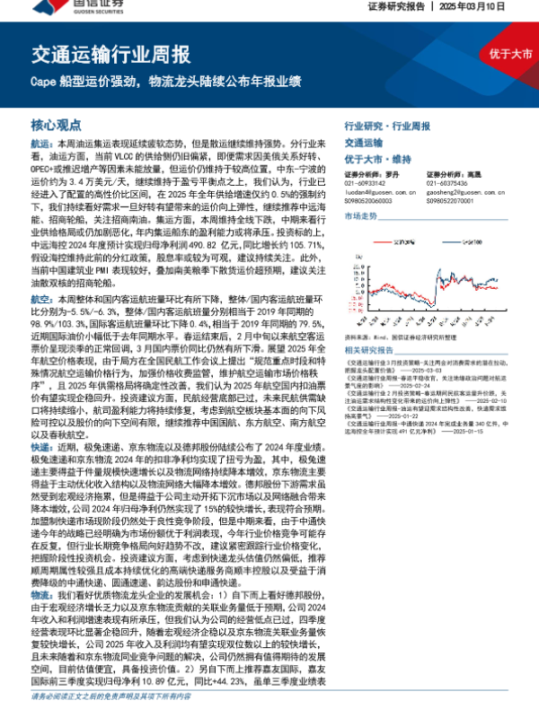 【国信证券】【20250310】20250310-国信证券-交通运输行业周报:Cape船型运价强劲,物流龙头陆续公布年报业绩-22页