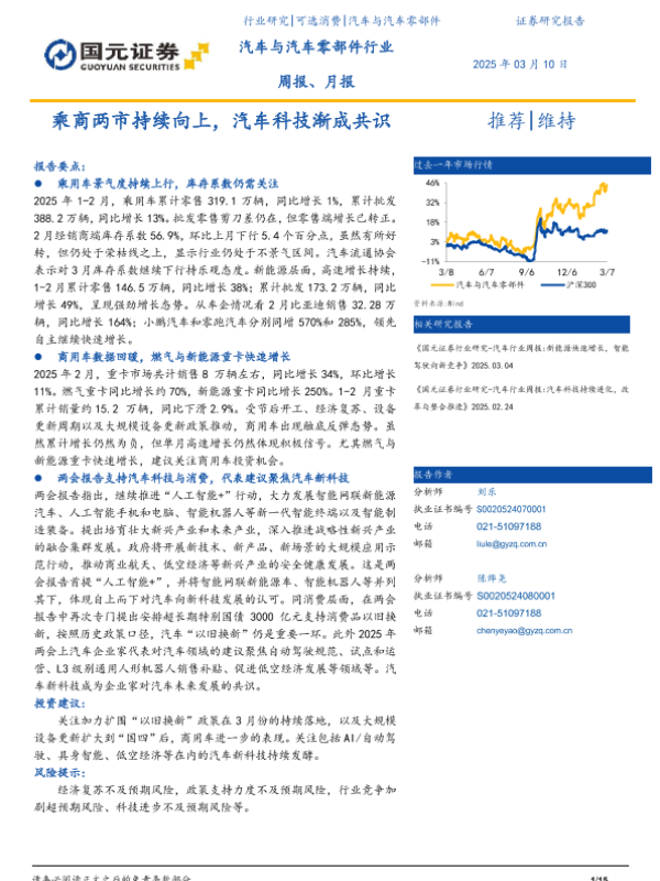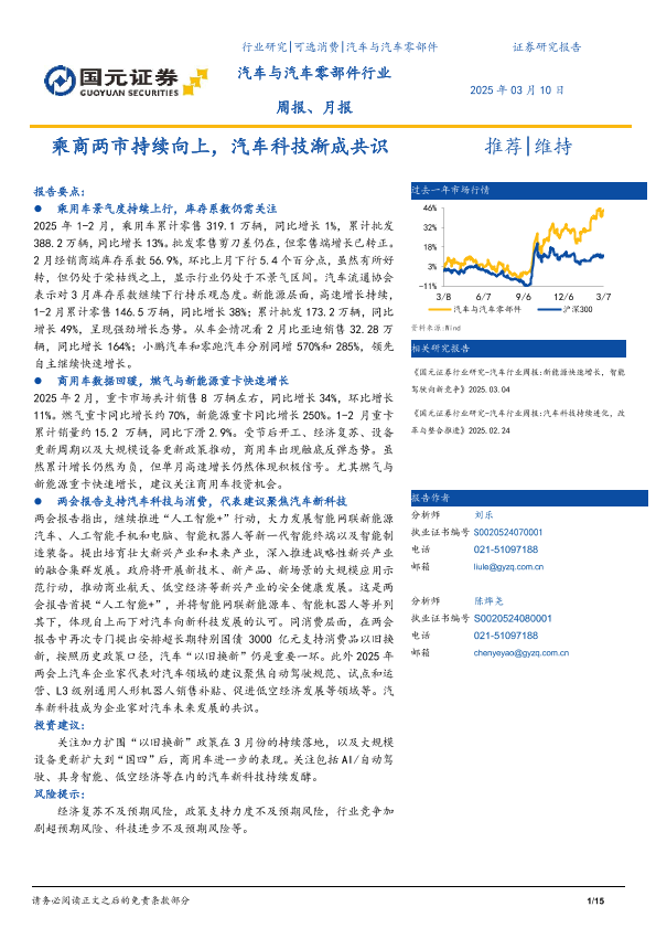 【国元证券】【20250310】汽车与汽车零部件行业周报、月报:乘商两市持续向上,汽车科技渐成共识-15页