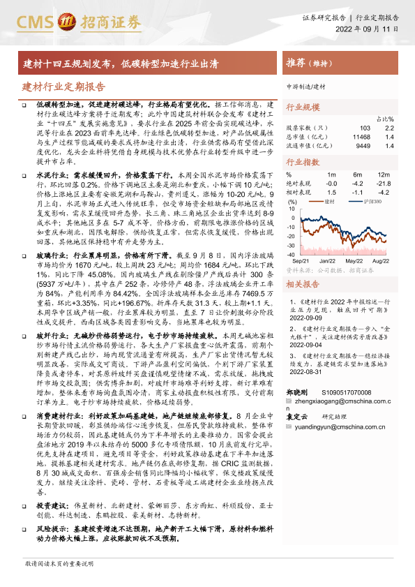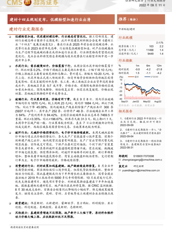 【海通证券】【20220911】建材行业定期报告:建材十四五规划发布,低碳转型加速行业出清-21页