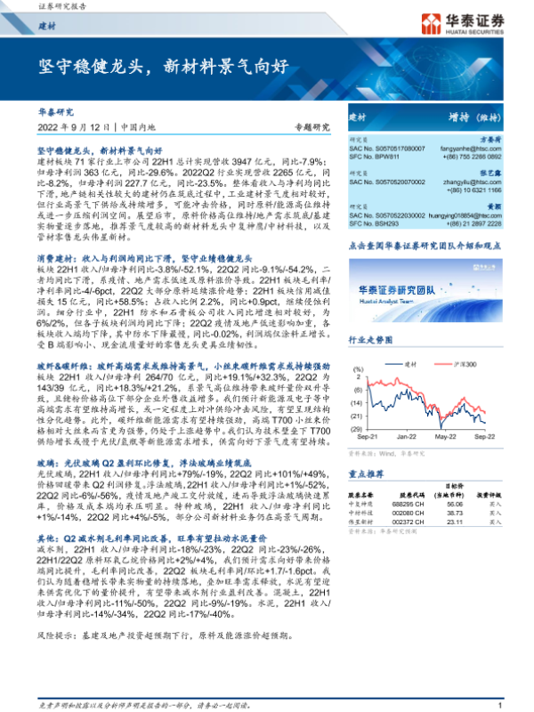 【华泰证券】【20220912】建材行业:坚守稳健龙头,新材料景气向好-27页