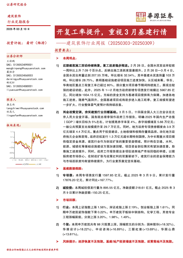 【华源证券】【20250310】建筑装饰行业周报:开复工率提升,重视3月基建行情-10页