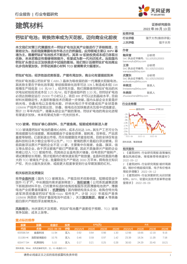 【天风证券】【20220913】建筑材料行业:钙钛矿电池,转换效率或为天花板,迈向商业化前夜-25页