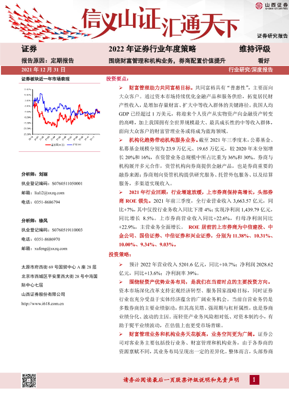【山西证券】【20211231】2022年证券行业年度策略:围绕财富管理和机构业务,券商配置价值提升-23页