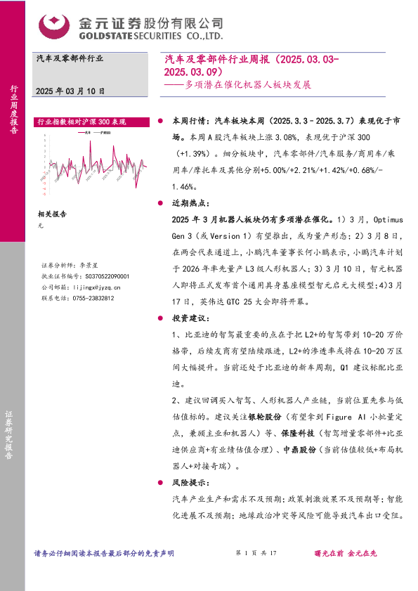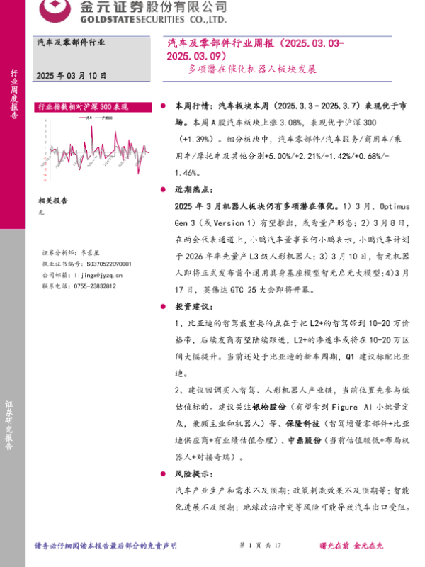 【金元证券】【20250310】20250310-金元证券-汽车及零部件行业周报:多项潜在催化机器人板块发展-17页