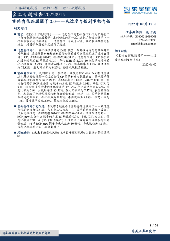 【东吴证券】【20220915】金工专题报告:重拾自信选股因子2.0,从过度自信到重拾自信-20页