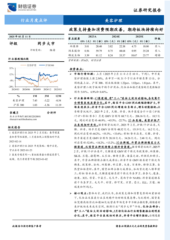 【财信证券】【20250311】20250311-财信证券-美容护理行业月度点评:政策支持叠加消费预期改善,期待板块持续向好-12页