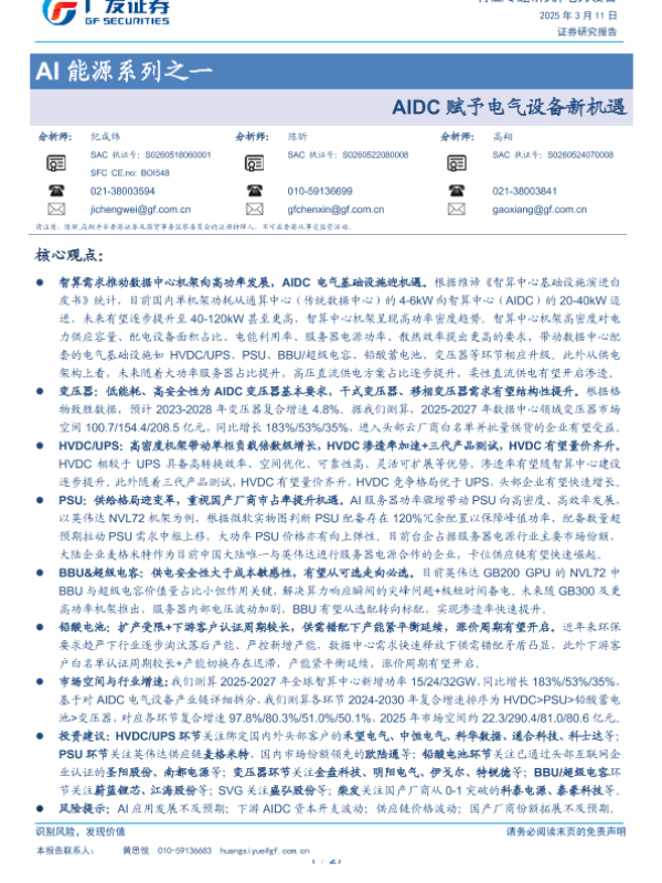 【广发证券】【20250311】AI能源系列之一:AIDC赋予电气设备新机遇-27页
