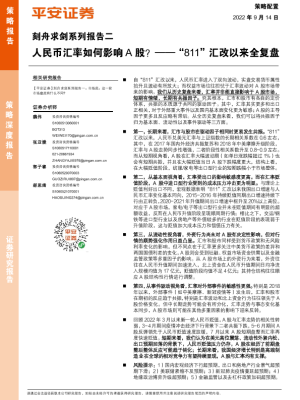 【平安证券】【20220914】刻舟求剑系列报告二:“811”汇改以来全复盘,人民币汇率如何影响A股?-32页