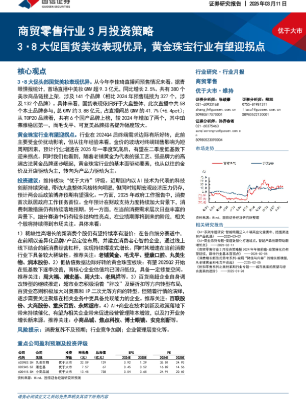 【国信证券】【20250311】商贸零售行业3月投资策略:3·8大促国货美妆表现优异,黄金珠宝行业有望迎拐点-13页