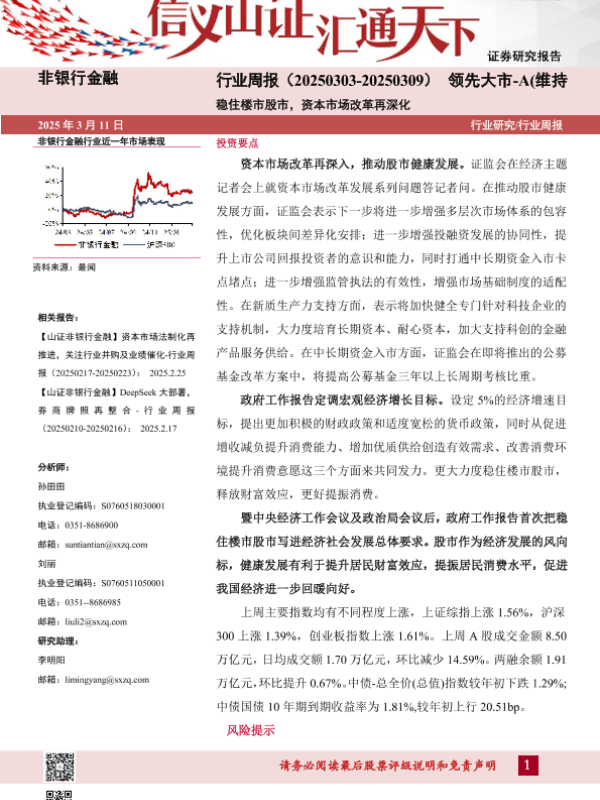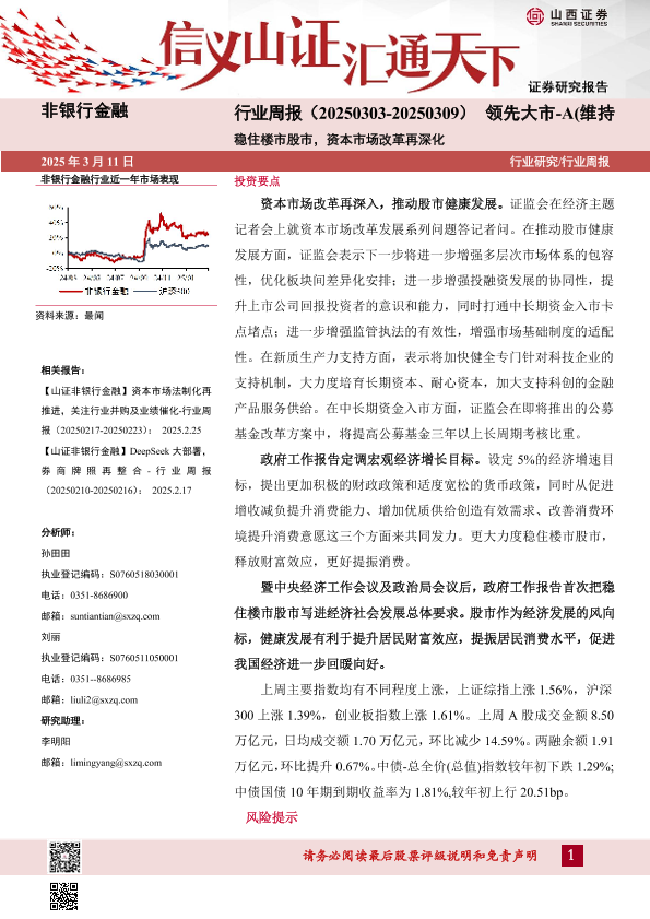 【山西证券】【20250311】非银行金融行业周报:稳住楼市股市,资本市场改革再深化-10页